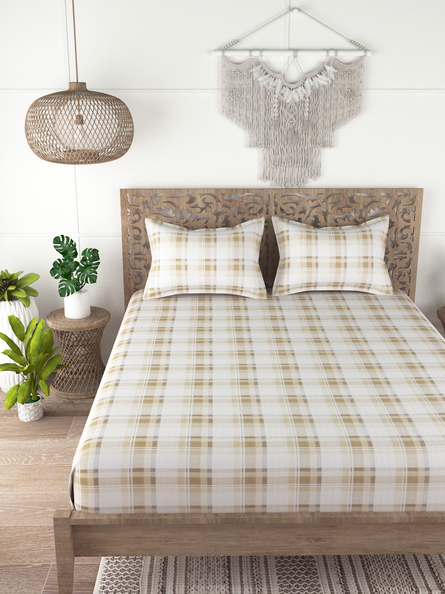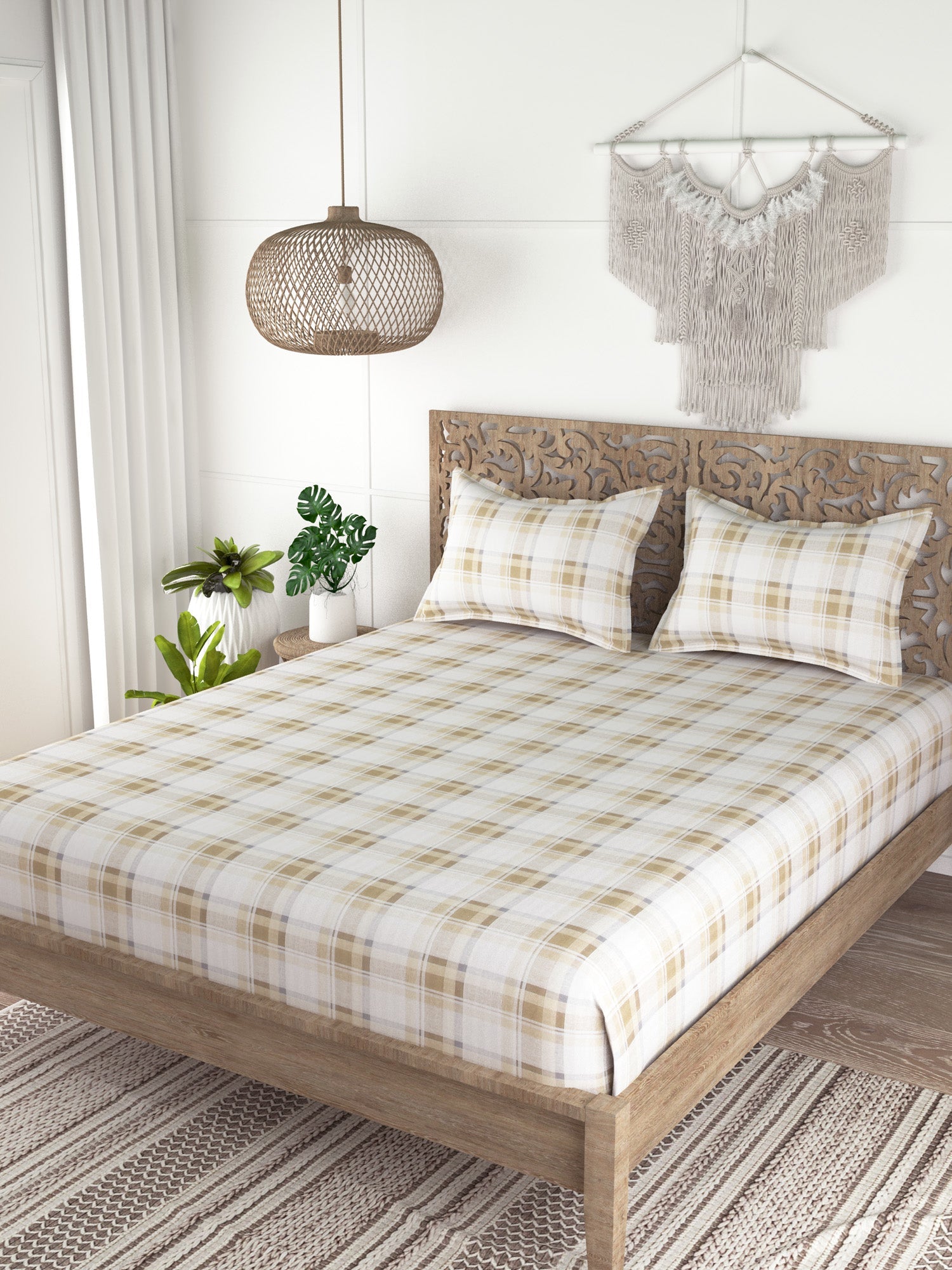 Check Print 100%Cotton Super King Bedsheet Set for Double Bed