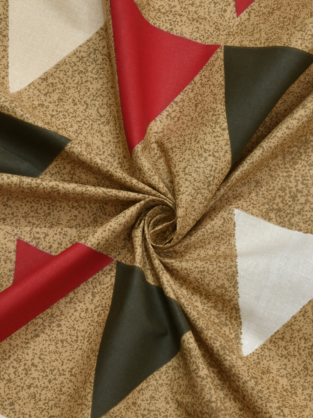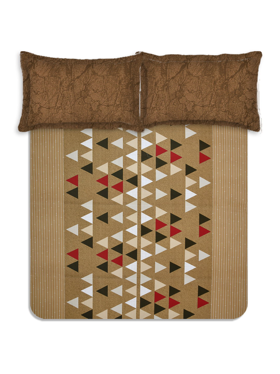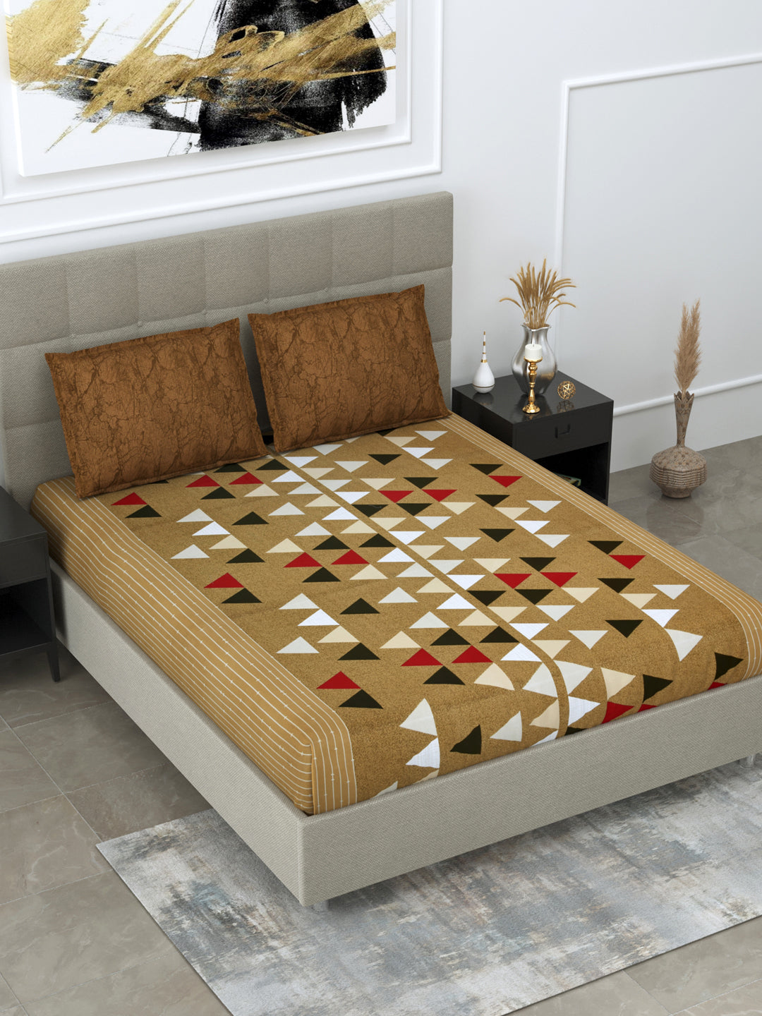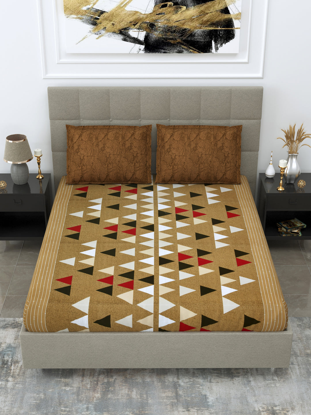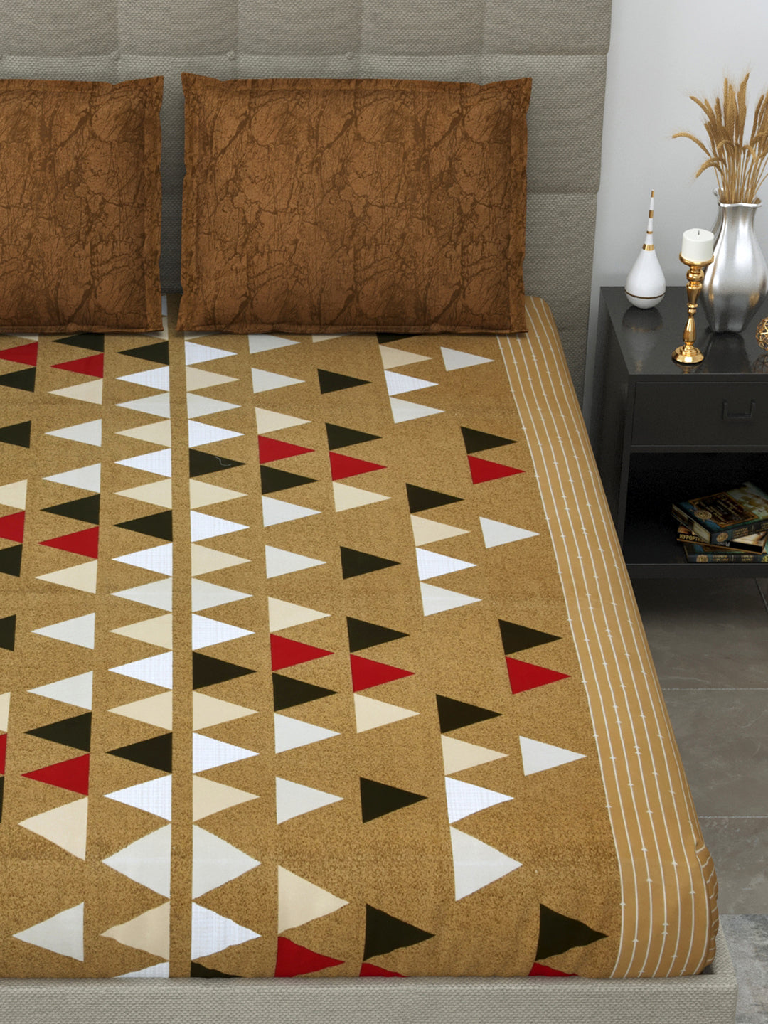 Brown & White Geometric Print King Size Fitted Bedsheet with 2 Pillow Covers