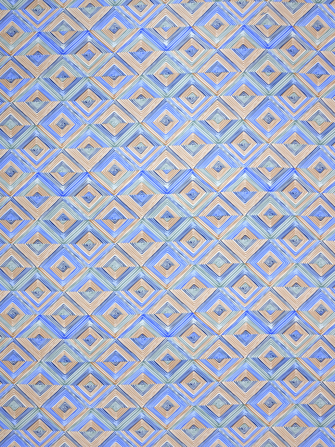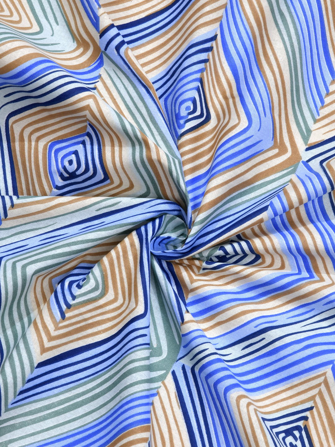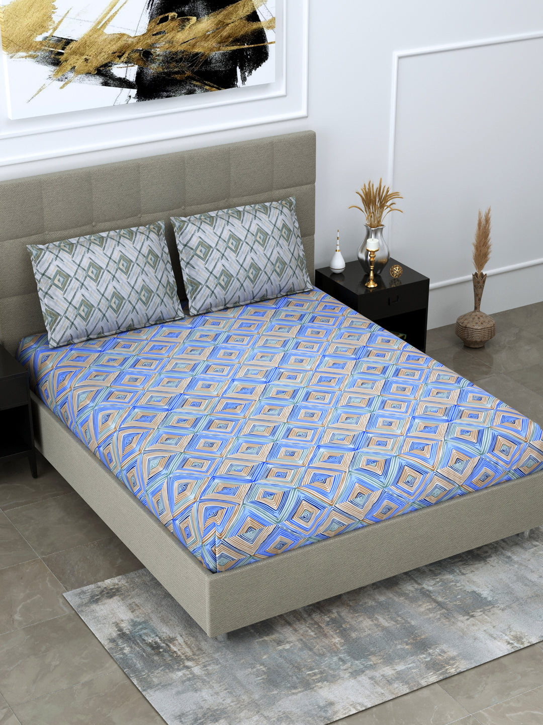 Blue & Brown Geometric Print King Size Fitted Bedsheet with 2 Pillow Covers