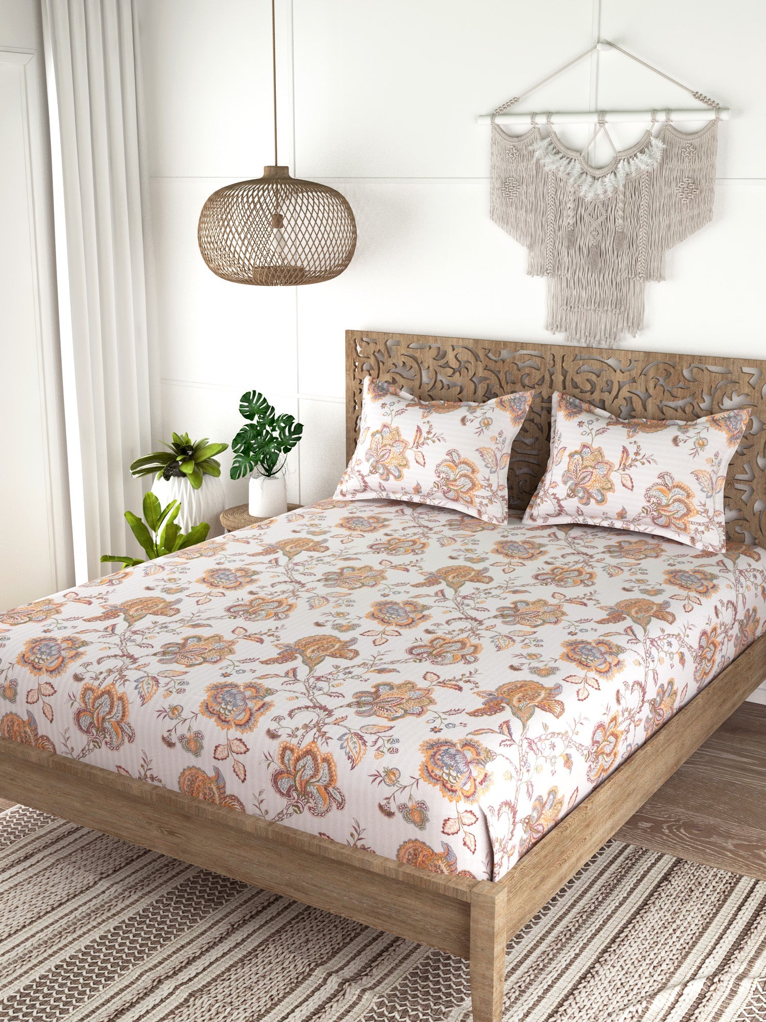 Floral Print 100%Cotton Super King Bedsheet Set for Double Bed